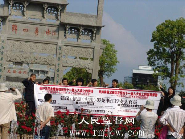 2008年5月10日,浙江省淳安县千岛湖风景区众位公民打着横幅建议:依据《宪法》罢免浙江淳安县官员。此和平倡议持续了大约一个小时。