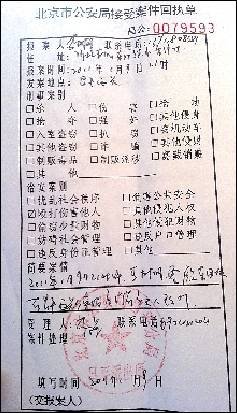 警方提供给李树明的回执单。 本报记者 王奕 翻拍