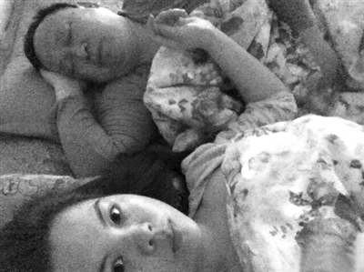 罗志元(左)抱着一个女婴。微博截图