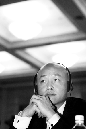 国美电器昨日首次回应“黄光裕被调查”。图为2005年黄光裕在国美合作高峰会上。龙平 摄