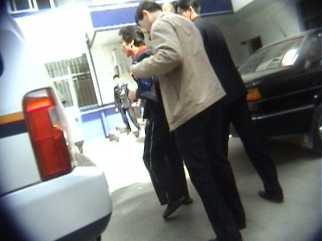 罪犯李新华被三门峡公安局侦查员押上警车,送往看守所