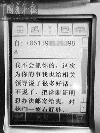 王志昌向中国青年报记者展示了他手机中保存的短信:“老王,你今天必须来单位,有要事!”