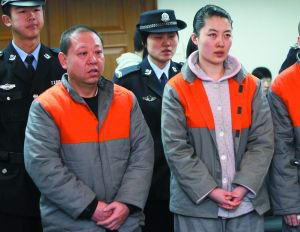 闫永喜和情人毛某被押进法庭。北京晨报李佳/摄
