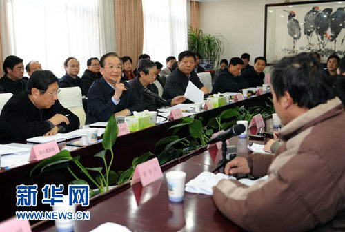1月24日,中共中央政治局常委、国务院总理温家宝前往国家信访局,与来访群众进行面对面交流,了解他们的困难和要求,并就政府工作听取意见。这是在信访局接待室,温家宝总理向河南省博爱县来访人员陈国安询问来访缘由,并叮嘱信访局接谈人员要认真做好记录,按程序做好接待办理工作。新华社记者李涛摄