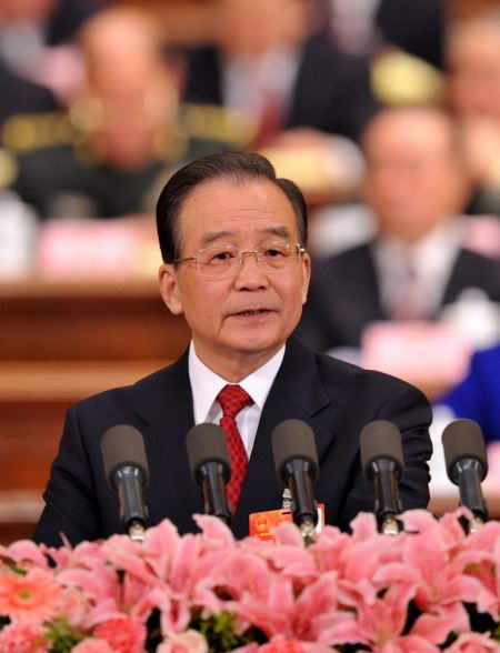 3月5日,第十一届全国人民代表大会第四次会议在北京人民大会堂开幕,温家宝作政府工作报告。