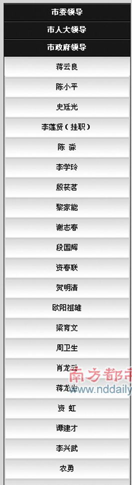 南都记者在常宁市政府网站和其所属的衡阳市政府网站上也发现了长长的领导名单,常宁市政府网站上列出的市政府领导共有19人,包括了1名市长,1名常务副市长,5个副市长,2个市长助理,2个正县级干部,4个副县级干部,1个调研员,2个副调研员和党组成员、办公室主任。