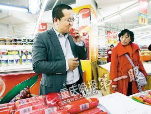 双汇集团重庆区域经理正在大嚼火腿肠 重庆晚报记者 毕克勤 摄