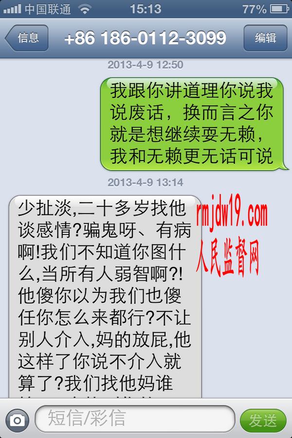 图:中南海高官范悦、浙商金忠等人向纪英男讨债的短信截图