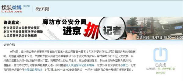 2011年8月17日,人民监督网刊发了“人大代表为何暴富?”一文。廊坊市公安局将被采访对象既受害人廊坊市富源水泥公司董事长董玉友作为“通缉逃犯”上网追逃。
