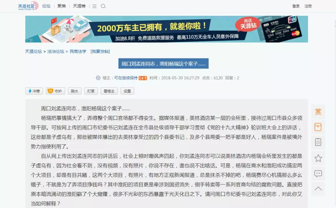 ( △图片来源:天涯社区截图)